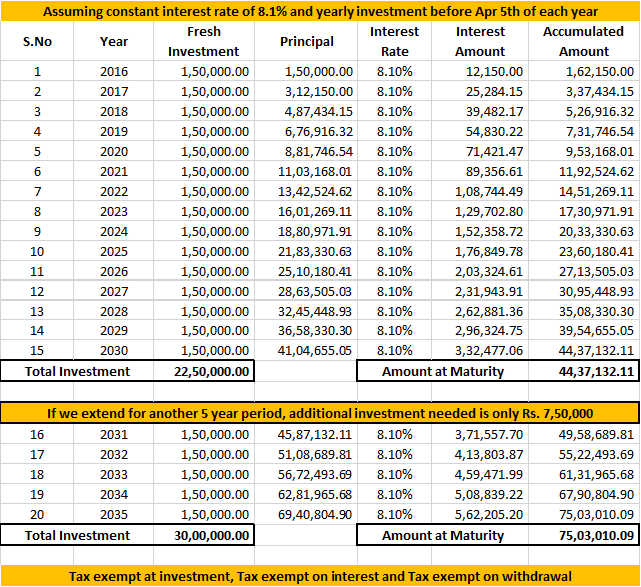 Minimum subscription of Rs.500/- and maximum of Rs.1, 50,000/- can be made in lumpsum or in 12 installments per financial year.